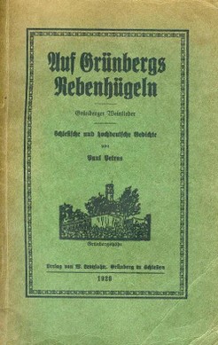 Diese Sammlung Grünberger Weinlieder sowie schlesischer und hochdeutscher Gedichte von Paul Petras erschien 1926 im Verlag von W. Levysohn, Gründberg in Schlesien. Sie liefert einen liebenswerten Querschnitt durch die Dichtung des Schlesiers.Lesetipp: Klicken Sie auf das Cover "Auf Grünbergs Rebenhügeln" - und Sie können diese Sammlung digital als E-Book lesen.